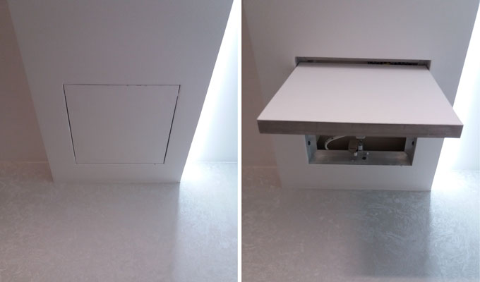 Алюмінієвий люк-невидимка використовується для ревізії технічної комунікації в стіні або стелі, захованої за гіпсокартонних листом. Люк після монтажу шпаклюють і фарбують або обробляють декоративною штукатуркою або обклеюють шпалерами, що робить люк невидимим на тлі обробки. Люки під фарбування в основному використовують для доступу до вентиляції, електрики і іншої техніки.